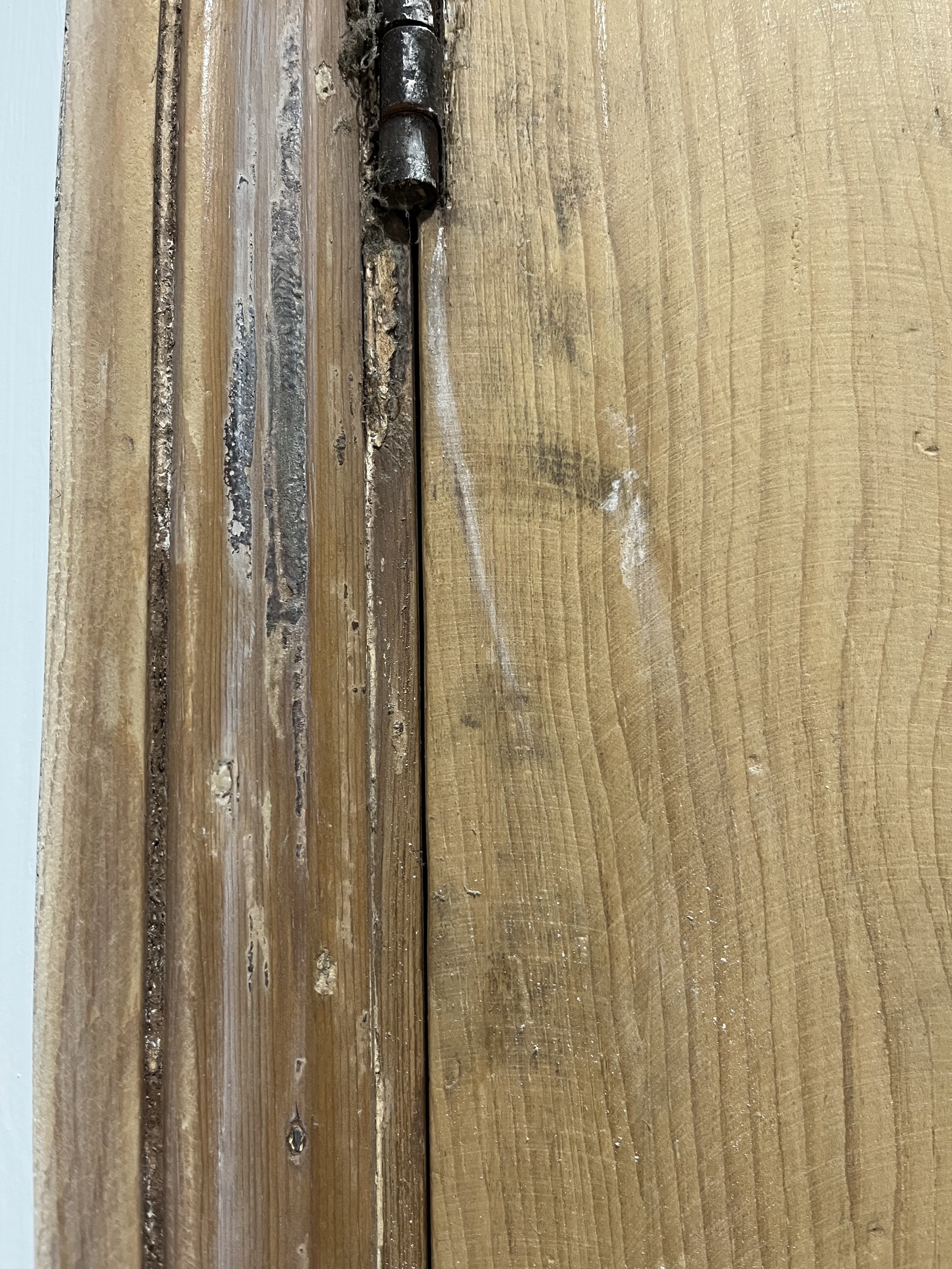 The leftover paint needed to be removed from the mouldings of the doorframe, which fortunately flaked away quite easily.