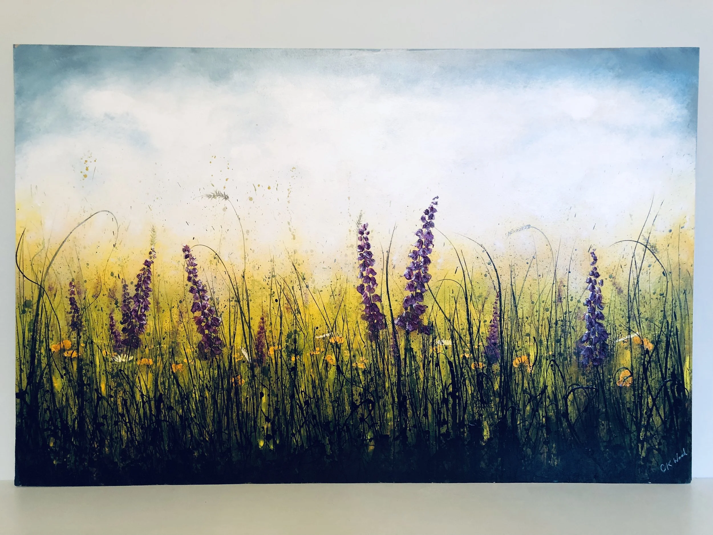 I actually have two pieces by Carol Wood. This oil piece of a floral landscape is 'Meadow 1'.