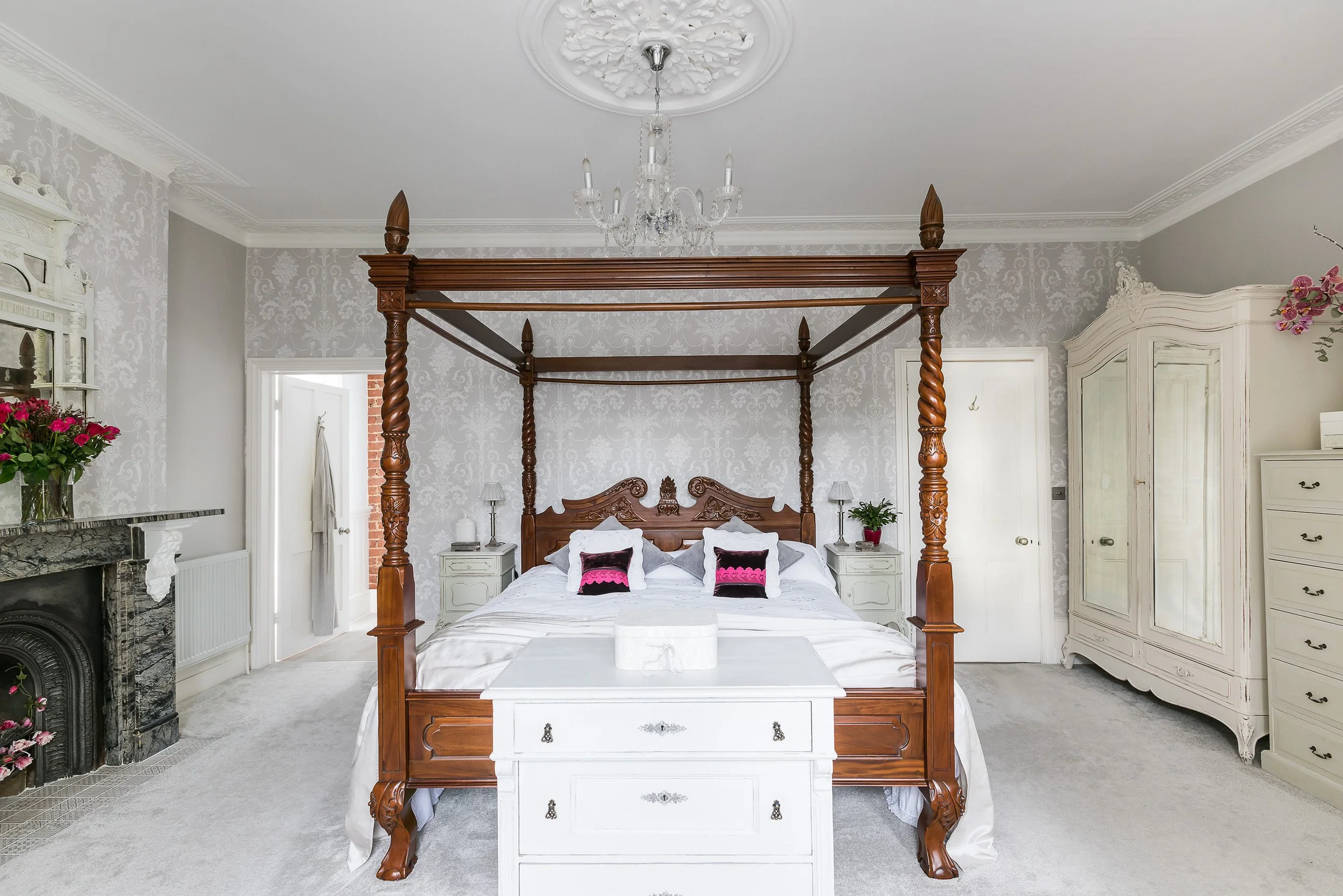 Now obviously it's all about the bed. But if you can't fit a four poster in then make sure you have more cushions than you could ever need.