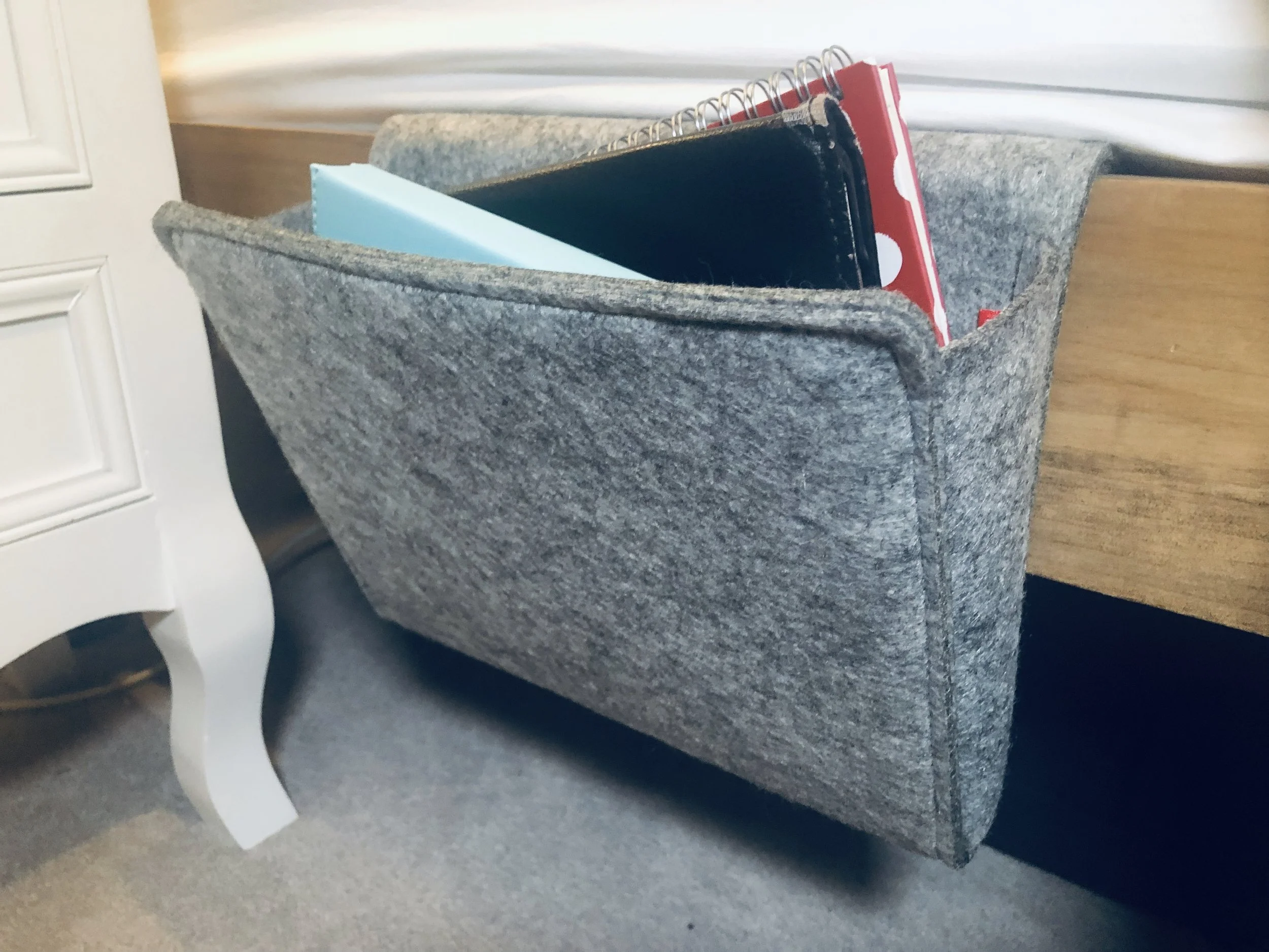 We all need a little bit of tidiness in our lives, particularly when it comes to the bedroom. So I was really pleased when I came across this stocking filler. It's a bedside pocket from Kikkerland.