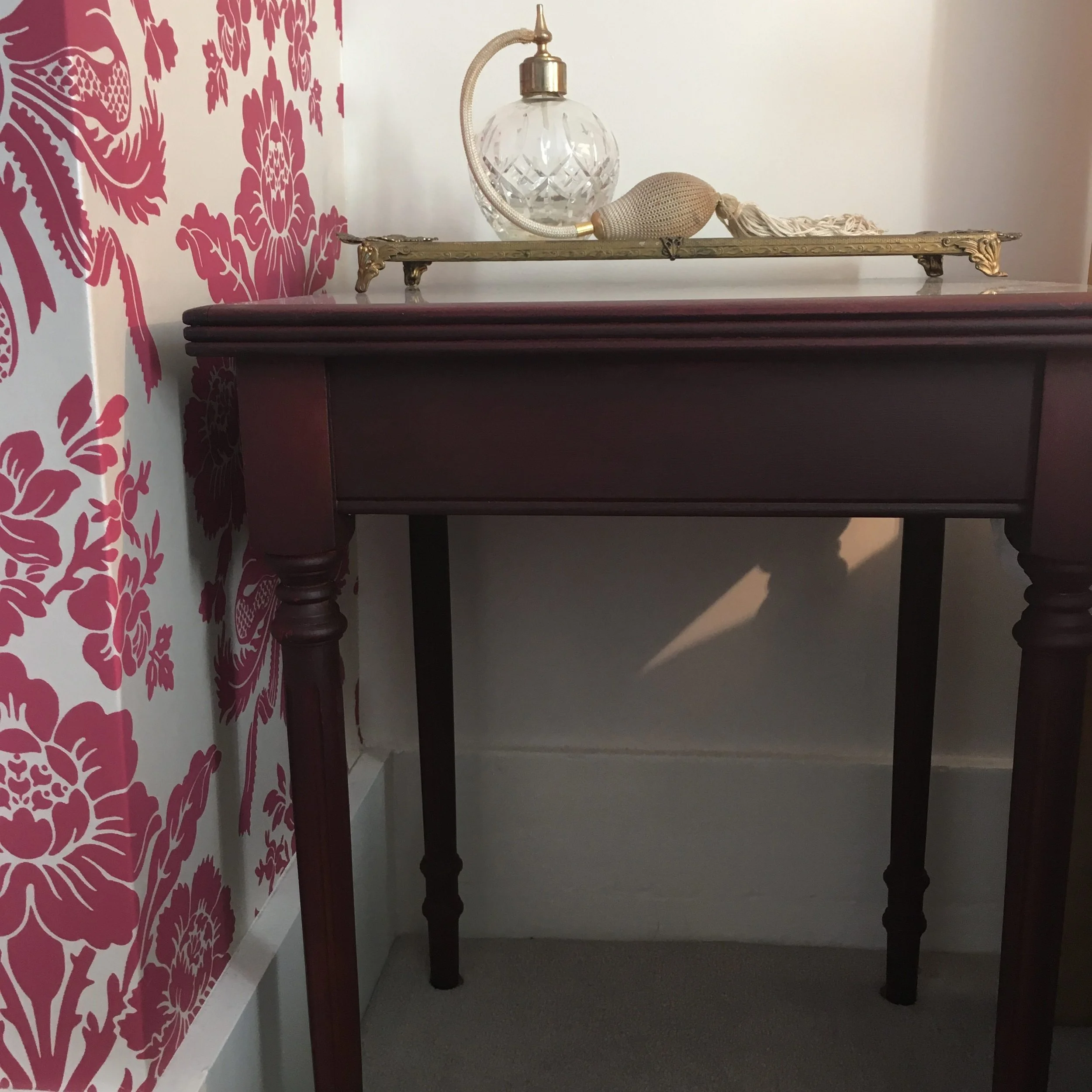 I wanted a rich wine colour for this table for which I used Grand Cru, with clear wax.