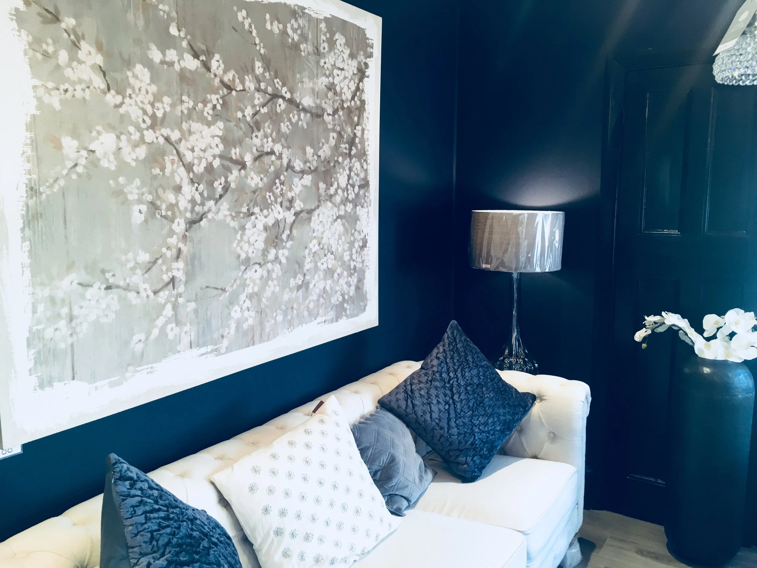 At the moment we are seeing lots of the dark and inky hues, lots of blue black colours, charcoal greys, and navys, very cosseting, I love the drama they create.