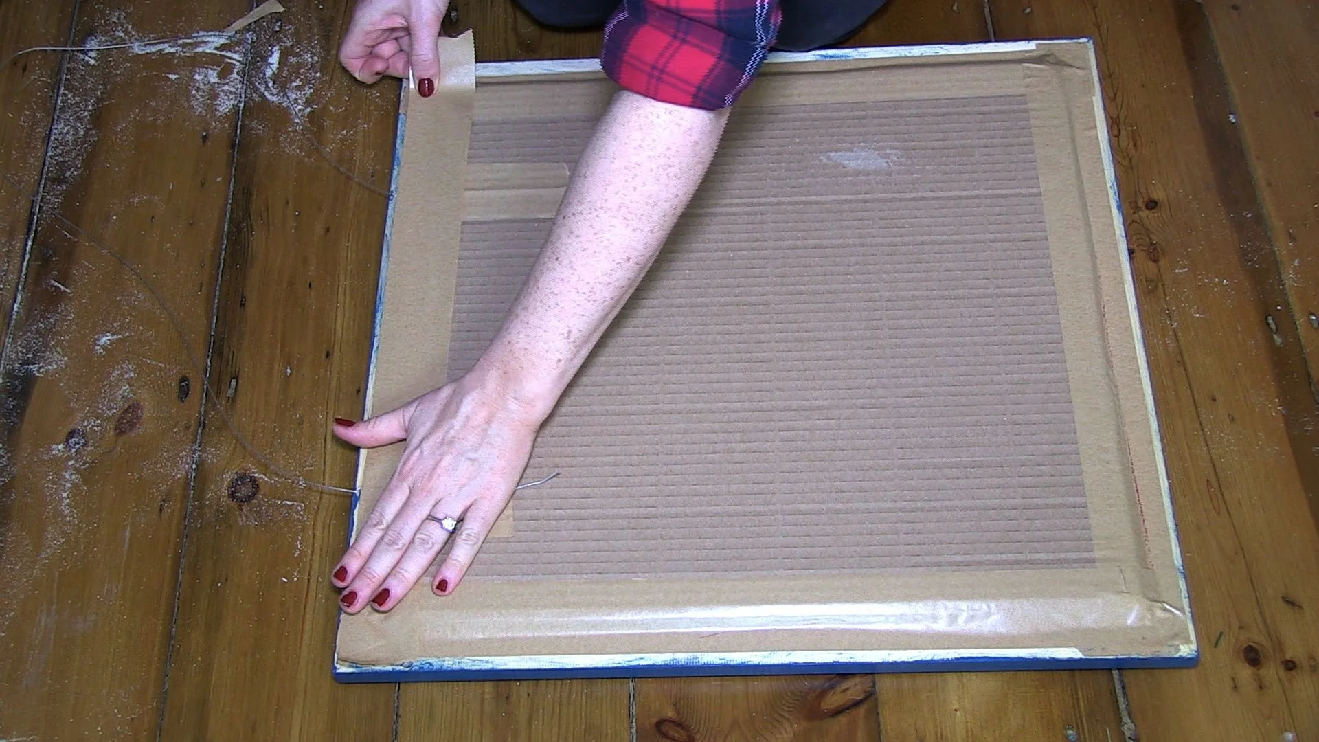 10. Finally, tape over the hanging staples and wire to prevent marking the wall. And that's how to make a picture frame!