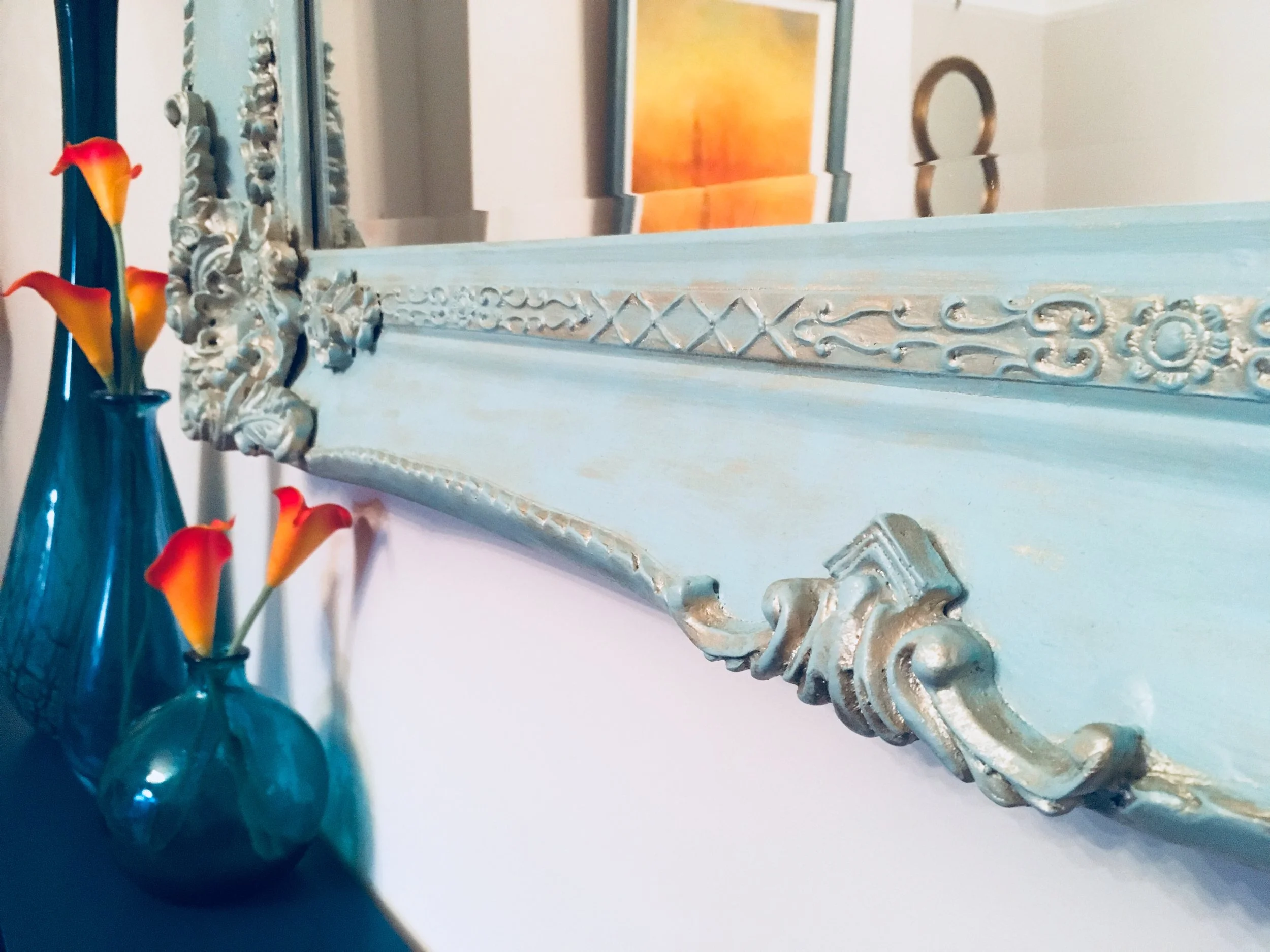 For example, this mirror has been a bit of a chameleon. It started off silver, then I needed it to be white, followed by gold and now it has the addition of turquoise to go with my lounge.