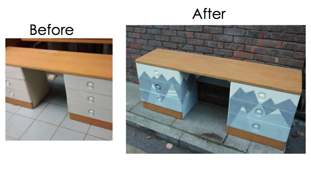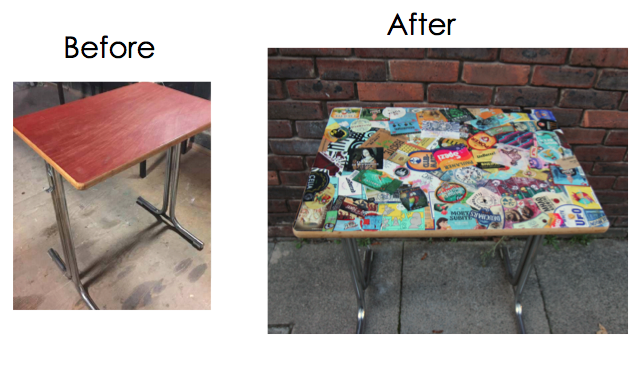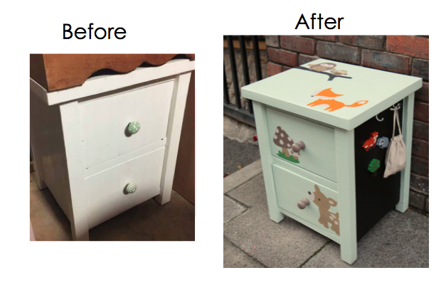I really feel like this table has a story to tell. I can imagine it intriguing people in years to come. A great way to add character to what was quite a dull piece originally.