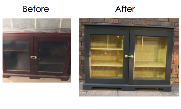 Unfortunately you can’t see the interior of this as it was beautifully done. What a way to make a boring sideboard into an incredibly appealing one.