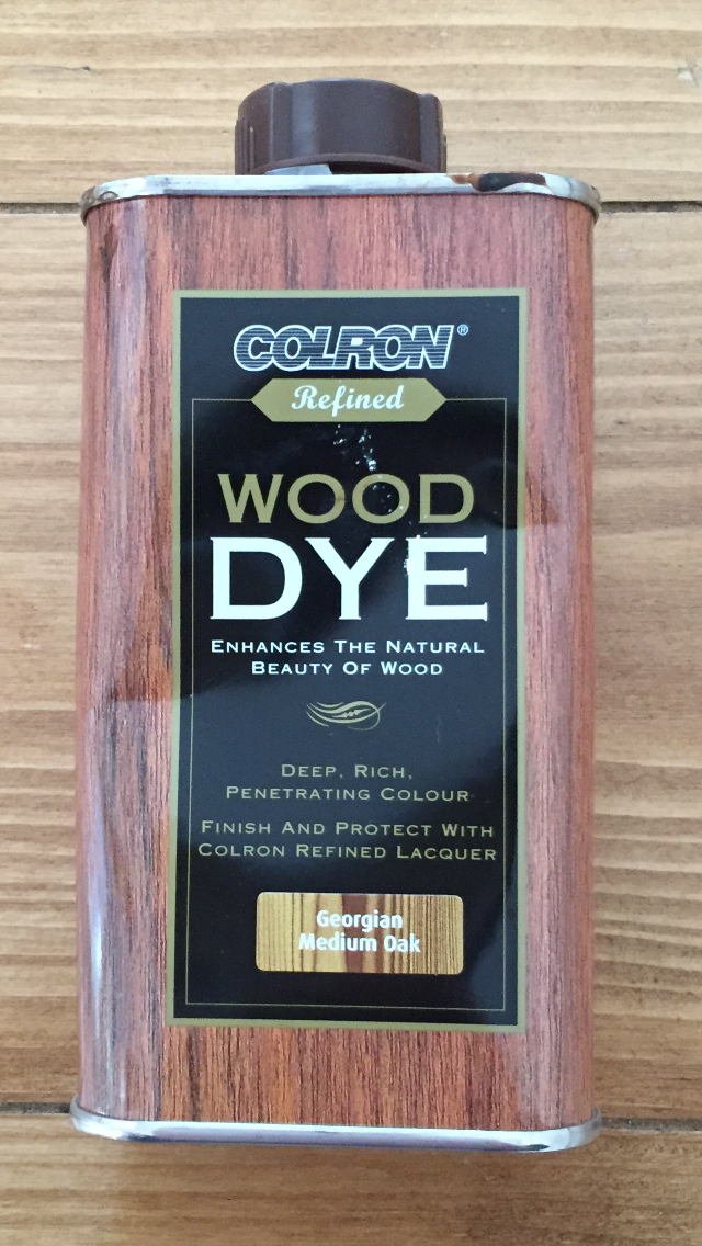 I chose to experiment rather than follow the current painted furniture trend. So I stained the table top with Colron Wood Dye in Georgian medium oak - you can get this from Homebase, Wickes, B&Q etc - and then roughed up the wood a little with a wire brush, just enough to expose the grain.